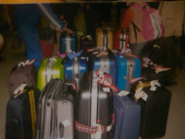 私の荷物は右から2番目、飛行機持ち込み可の大きさです。